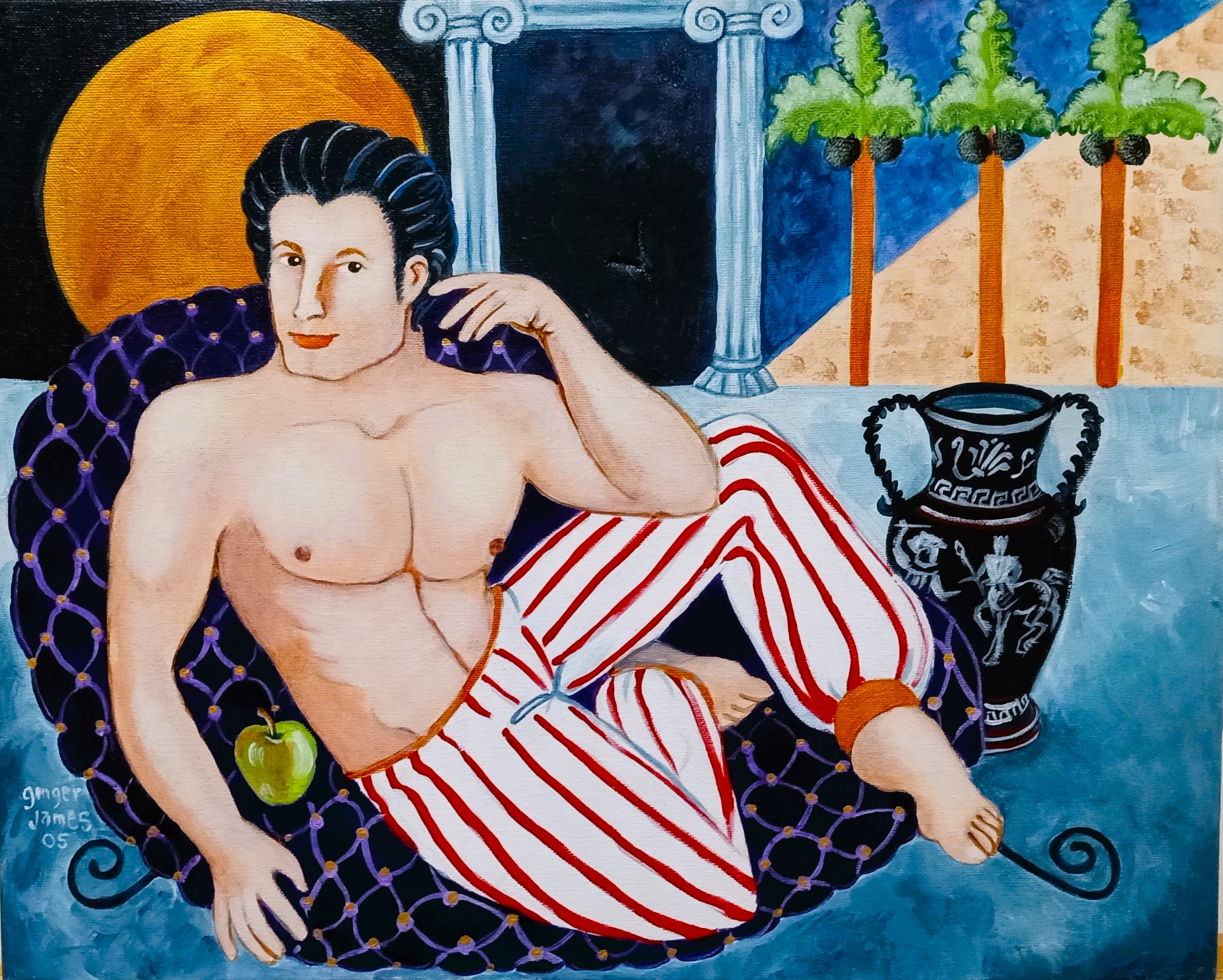 Striped Pants, Greek Vase Harvest Moon 16″ x 20″ Canvas original $1100.00